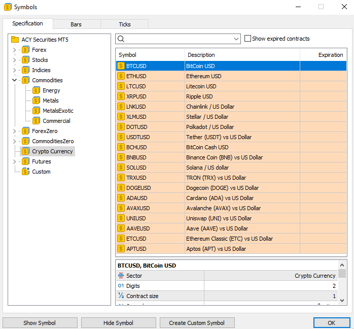 全球领先的多元资产差价合约经纪商 ACY证券(ACY Securities) 今日宣布,新增10个加密货币差价合约产品,即从原有的9个增加至19个,并在 MT4、MT5 和 ACY交易平台等实盘平台上同步提供24/7全天候交易服务。