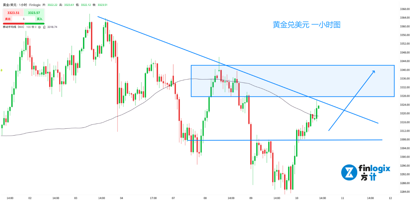 就像昨日分析中提到的,黄金的价格同时受到美元和美股的双重影响,而目前美股的涨势有所放缓,同时美元重启下跌趋势,对于黄金来说就是不错的看涨机会,不排除后续向上突破的可能。