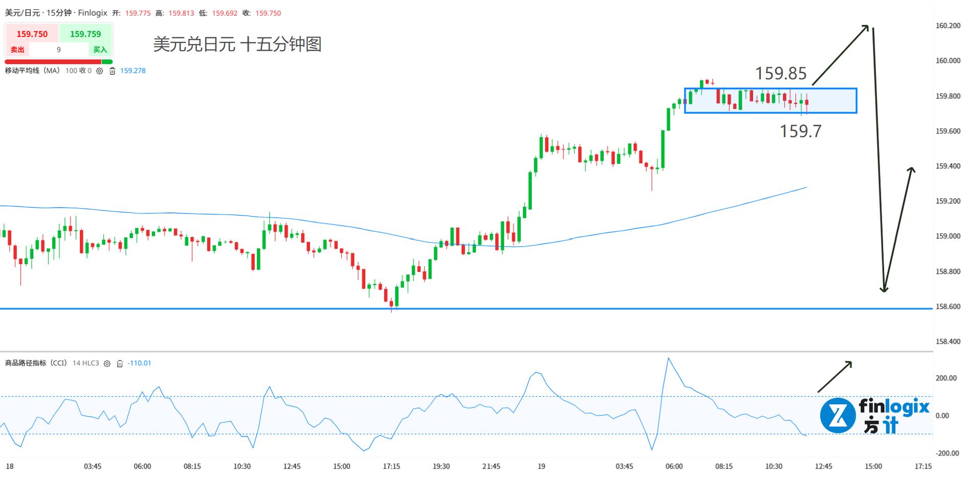 日内交易策略:(趋势跟随)突破159.85跟随看涨,设好移动止盈