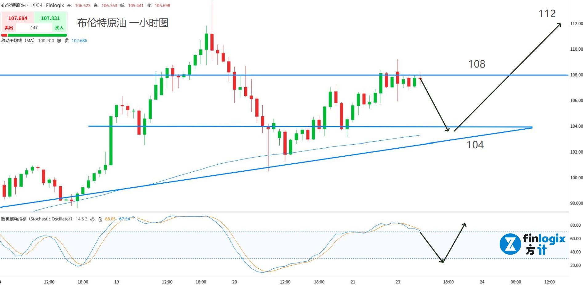 技术面:100均线向上,价格多头动能稳定,不过现价在108关口受阻,考虑到特朗普强硬态度,日内交易策略以突破跟涨为主。如果消息面出现扭转,则可以关注104关口的支撑。