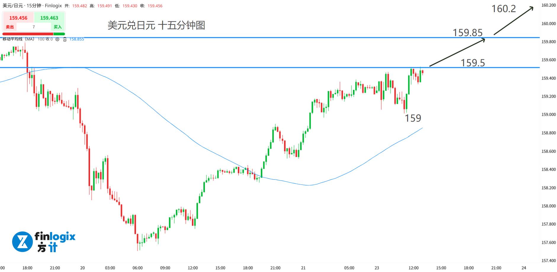 阻力参考:159.5(突破)159.85(突破&止盈);160.2;160.5;162