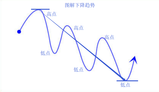 低点比前面的低点低,高点比前面的高点低,是下跌趋势;