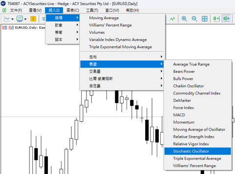 我们会在 MT5 平台上设定图表并添加随机指标: