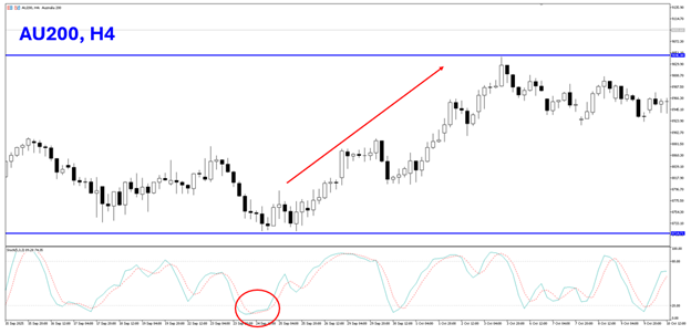 在 AU200 4小时图中,可以看到一个明显的盘整区间。