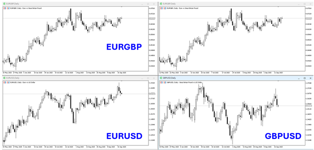 - 当 EUR/GBP 下跌时,表示 GBP 强于 EUR。