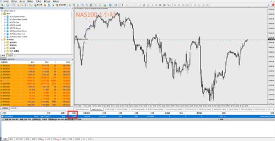 请按照以下步骤在 MT4 或 MT5 上实施部分平仓。在本案例中,我们假设您已经开设了一个1手的纳斯达克100指数 (NAS100)多单。
