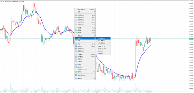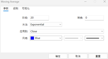2. 插入指标:工具列 → 插入 → 指标 → 走向 → 移动平均线(Moving Average)