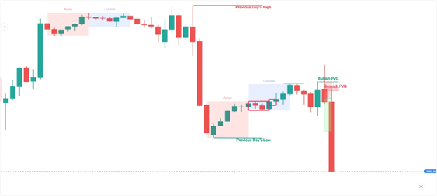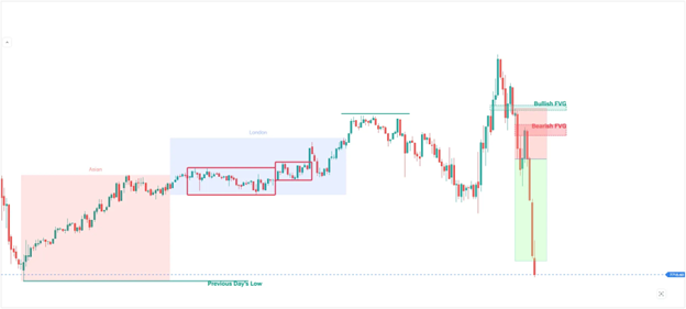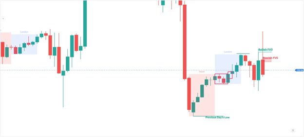 扫过伦敦低点后,看涨的公平价值缺口(Bullish FVG)未能守住。