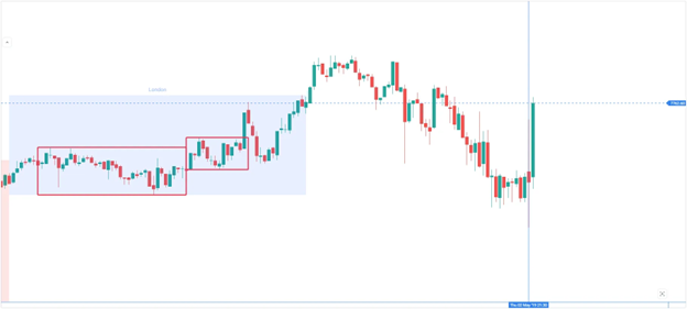 纽约开盘后不久,价格触及伦敦时段低点后,成功获得支撑并进入上涨势头。