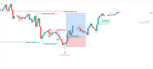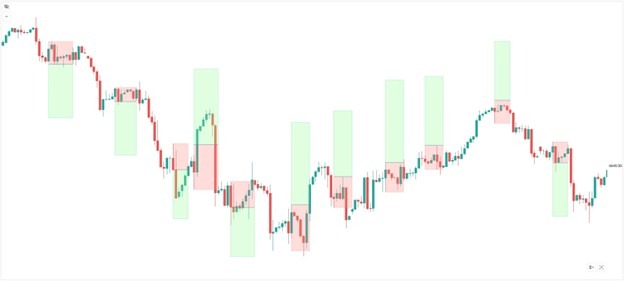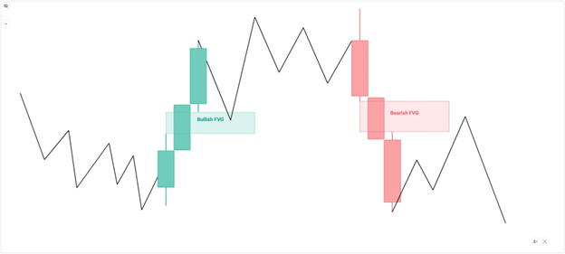 突破瞬间带来的动能,会引发“FOMO”情绪,同时也会在图表上留下缺口,这些缺口被称为公平价值缺口(Fair Value Gap,FVG),本质上是尚未完成成交的订单区域。