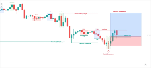 价格未有效站上该水平,迅速反转,并留下新的 FVG。