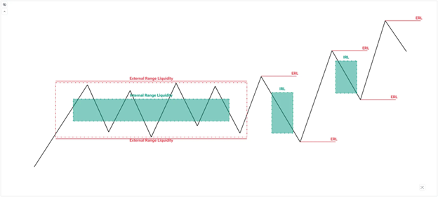 流动性到底藏在图表的什么位置,以及如何区分外部区间流动性(External Range Liquidity,ERL)与内部区间流动性(Internal Range Liquidity,IRL)。